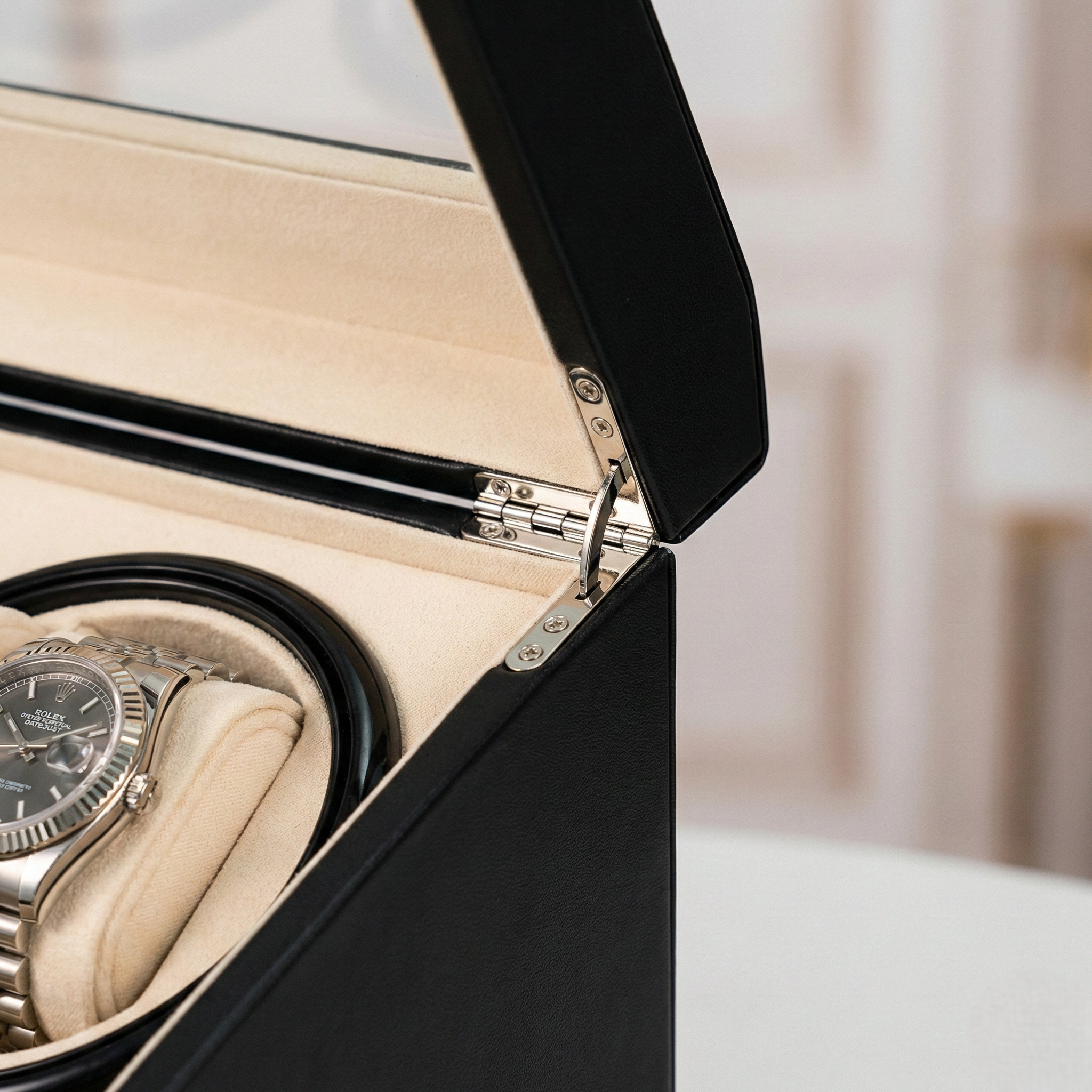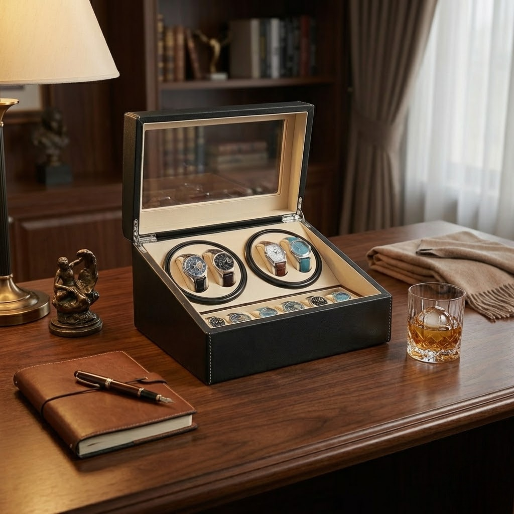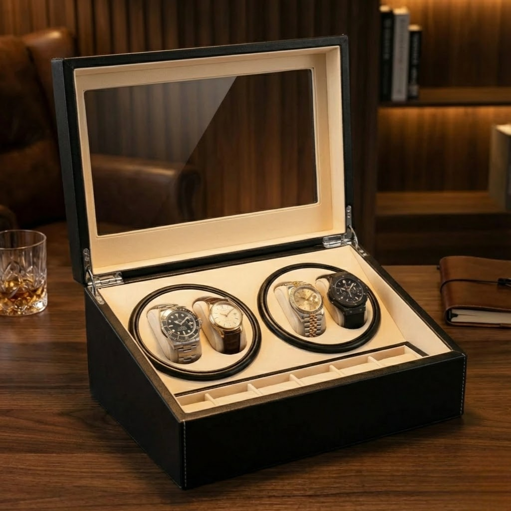 Le remontoir Bodrum est conçu pour les collectionneurs exigeants qui recherchent élégance, organisation et un entretien quotidien de leurs montres automatiques. Grâce à son moteur Mabuchi ultra-silencieux, il assure un remontage discret, idéal pour la chambre ou le bureau. Doté de quatre remontoirs et de six compartiments rembourrés, il offre une solution complète pour ranger et protéger vos montres de la poussière et des micro-rayures. Les coussins ajustables s'adaptent facilement aux boîtiers de toutes tailles, des plus larges aux plus fins, y compris les modèles féminins.